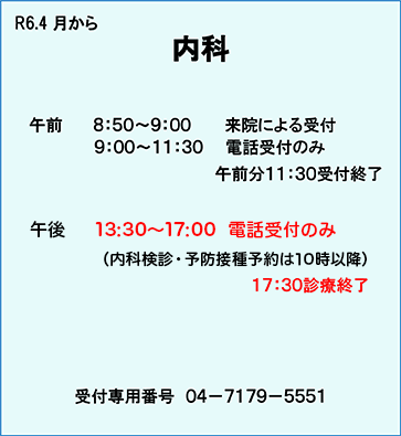 待ち時間の目安はネコの目システムをご利用ください。内科は午前中のみご利用いただけます。